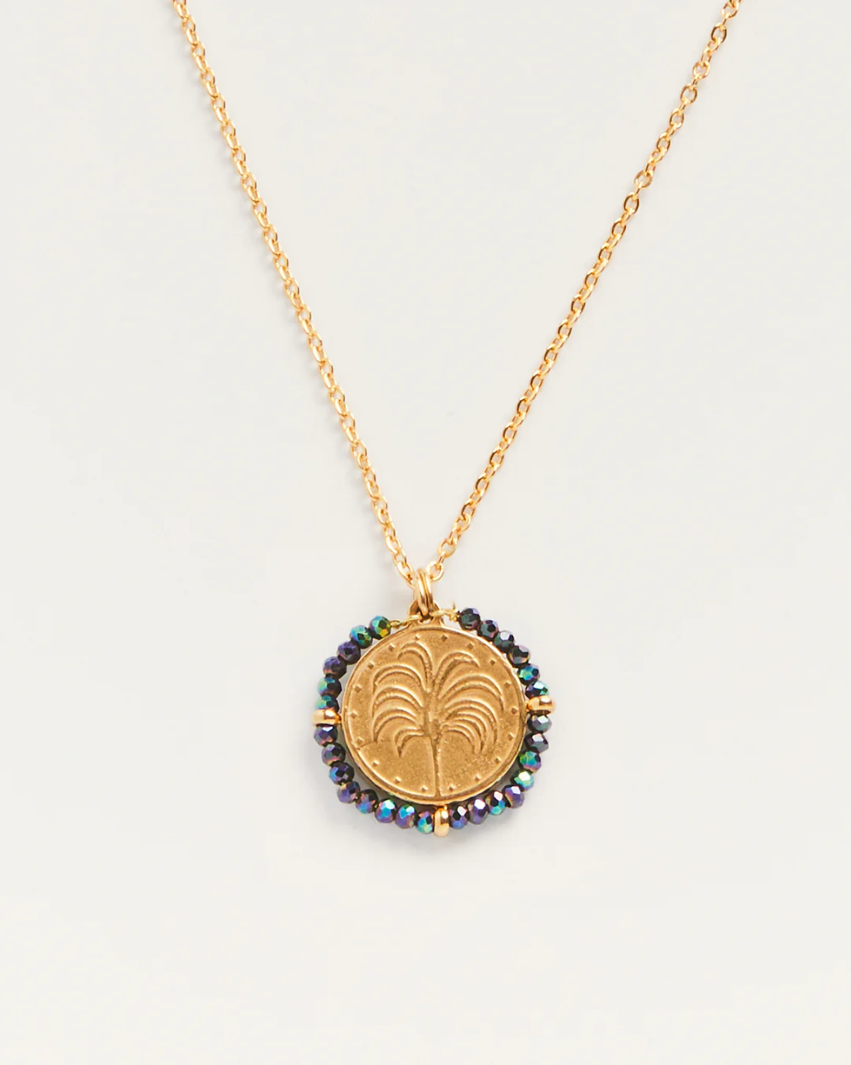 Golden stainless steel medallion adorned with semi-precious stones that won't fade (we promise)! chain is NOT included