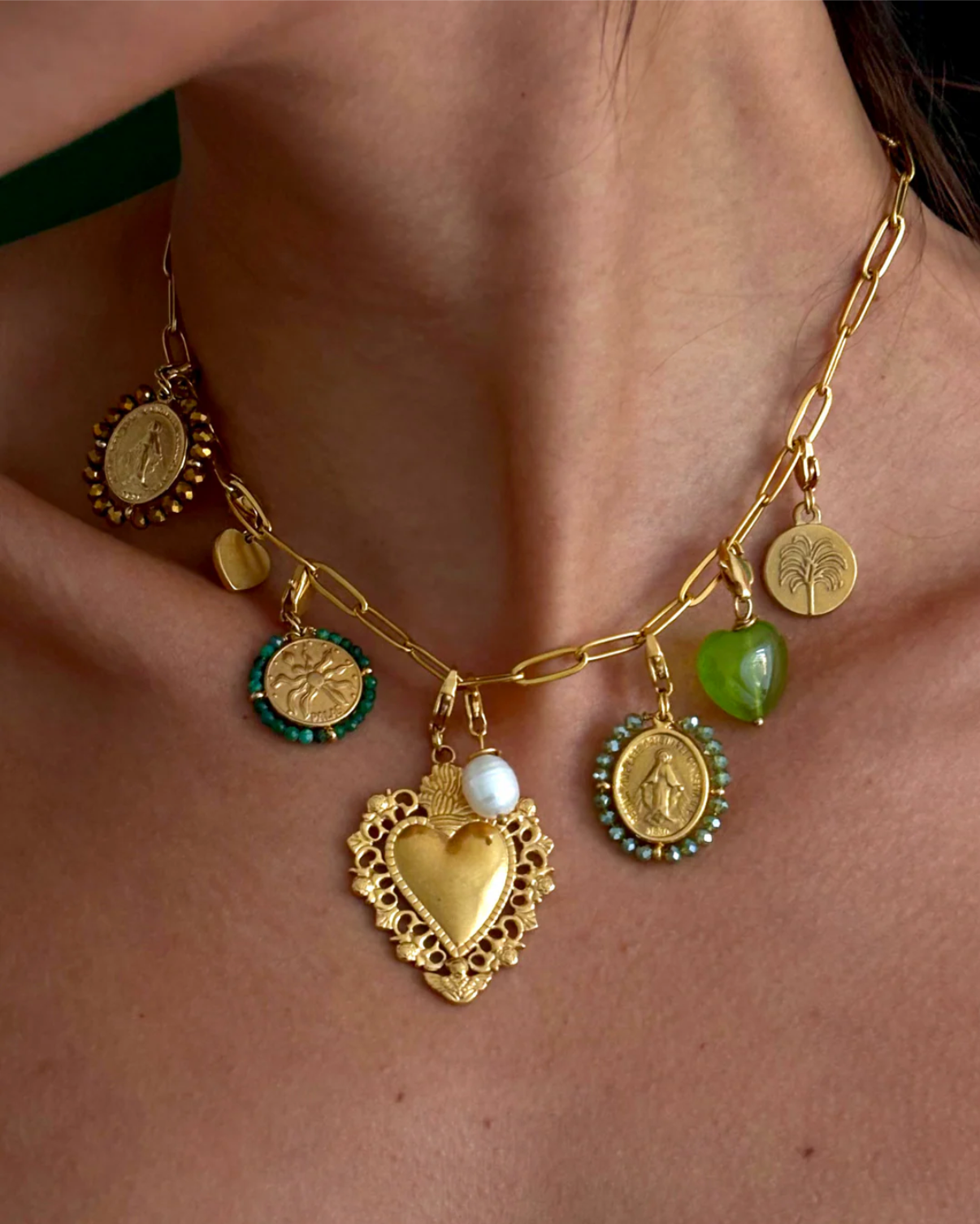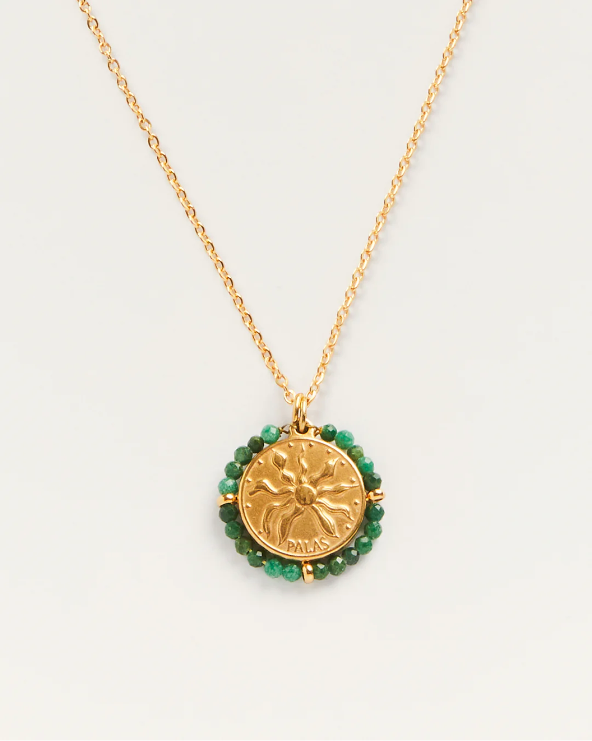 Golden stainless steel medallion adorned with semi-precious stones that won't fade (we promise)! chain is NOT included