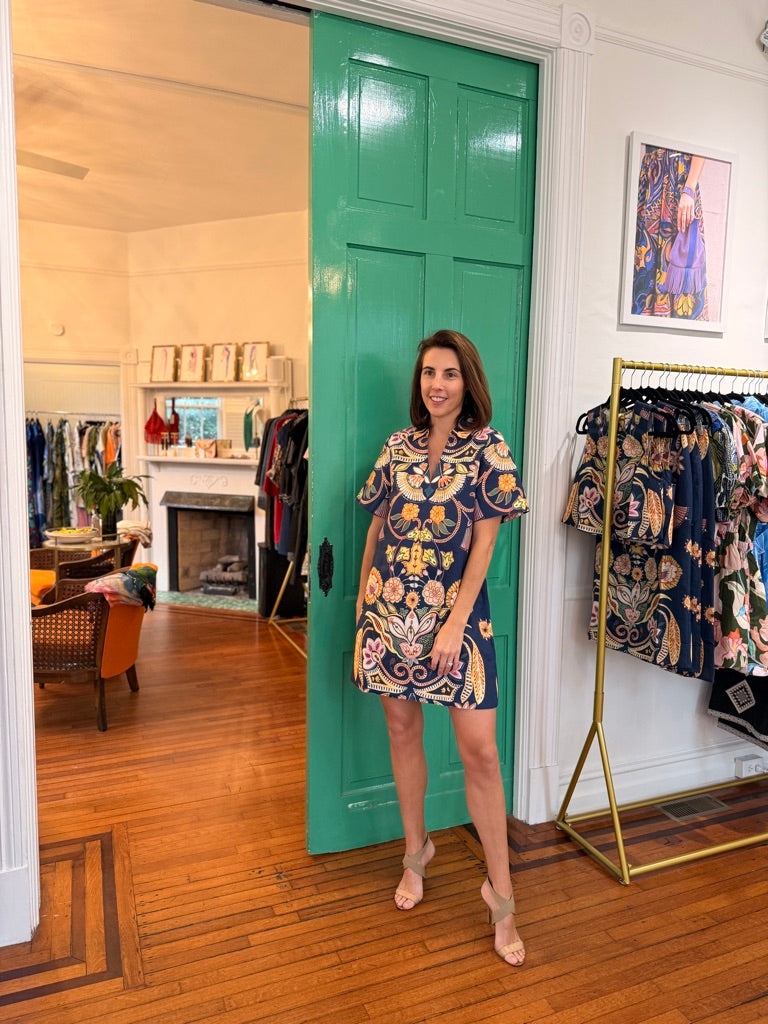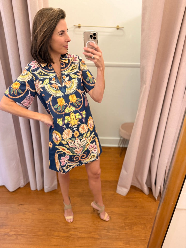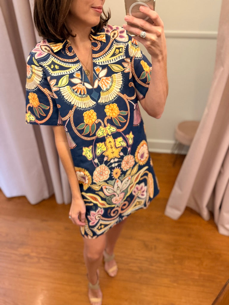 At the intersection of comfort and style, our Dede mini dress is the epitome of elevated everyday dressing. The slip-on silhouette hangs straight and features a polo-style collar and a floral placement print that will have you cashing in your frequent flyer miles and heading for the tropics.