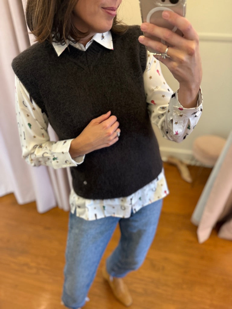 Brown wool blend sweater vest