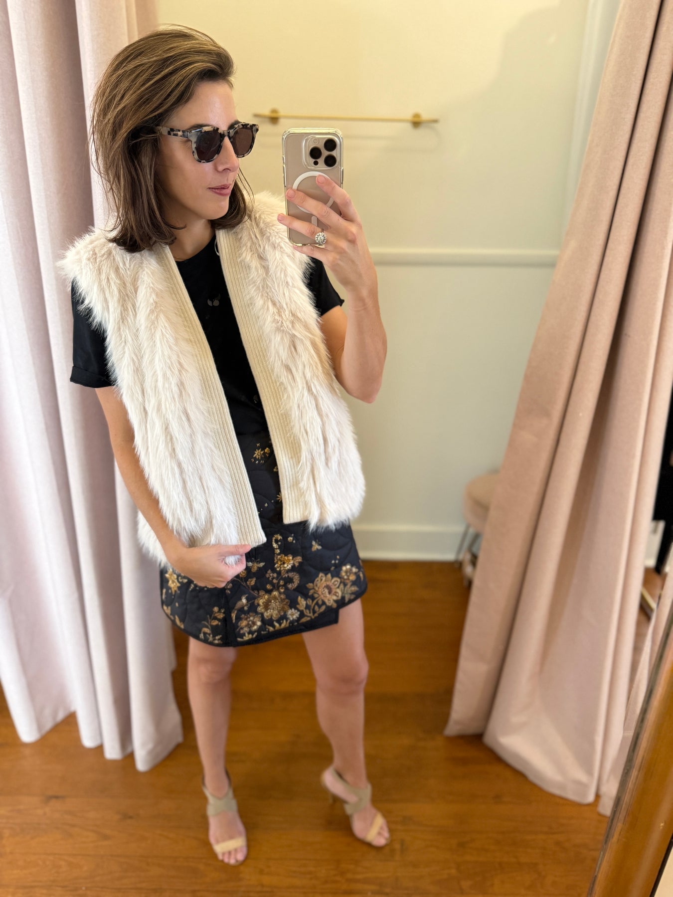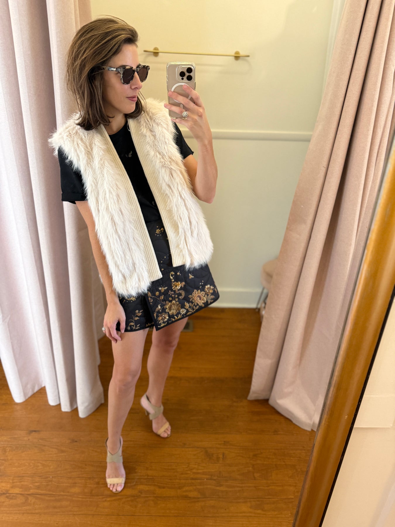 Beige/Ivory faux fur vest with knit