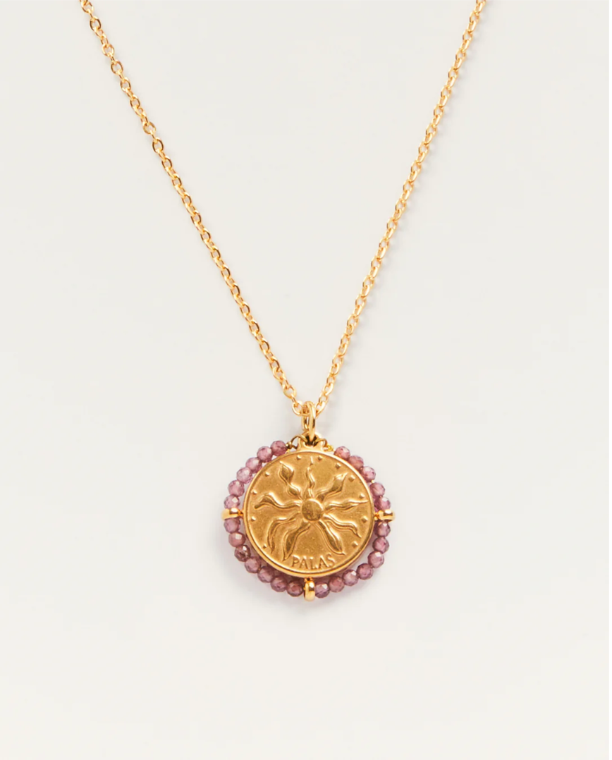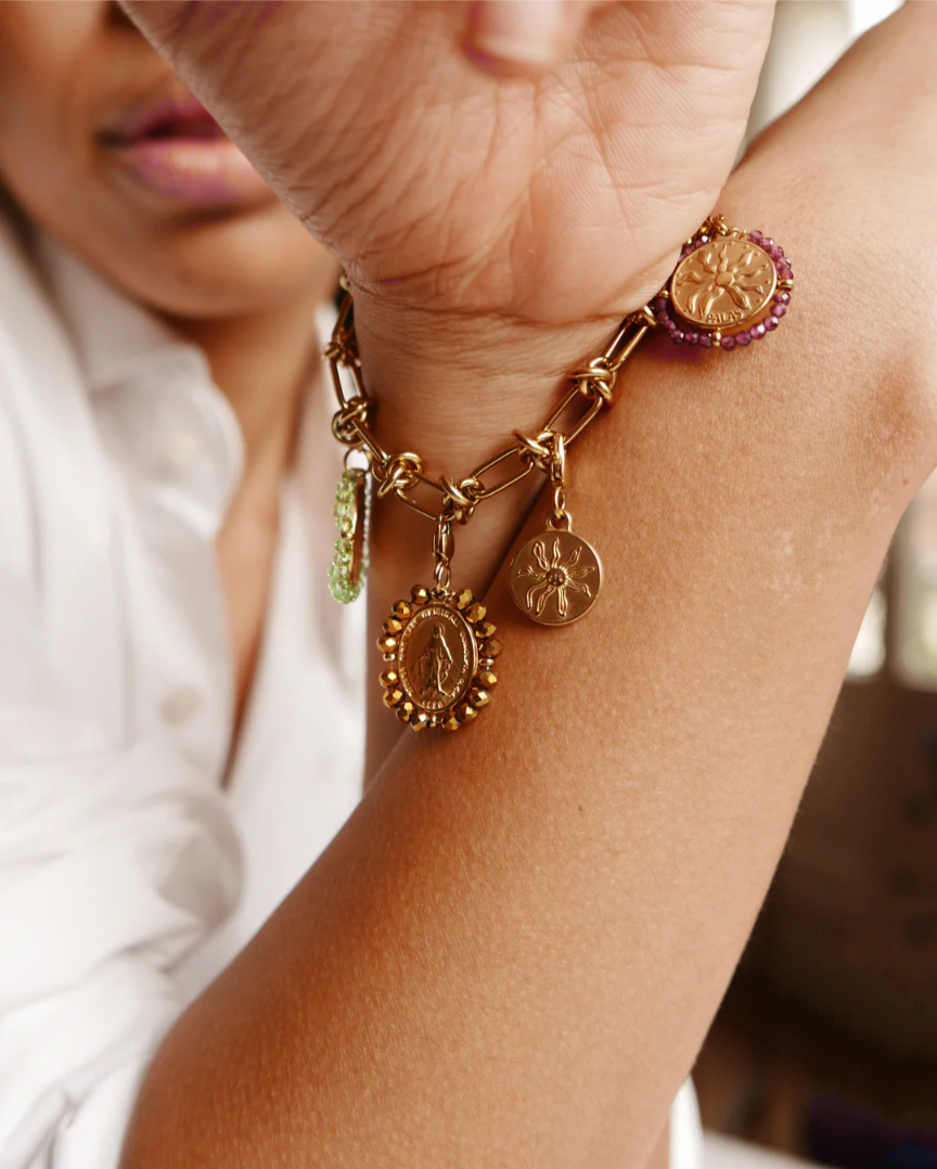 Golden stainless steel medallion adorned with semi-precious stones that won't fade (we promise)! chain is NOT included
